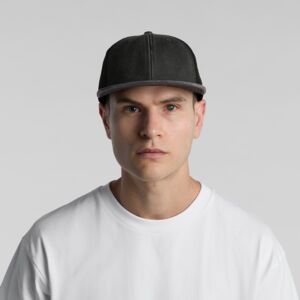 Washed finish front and peak with worn look, plastic snapback, tonal under-peak lining, mesh back